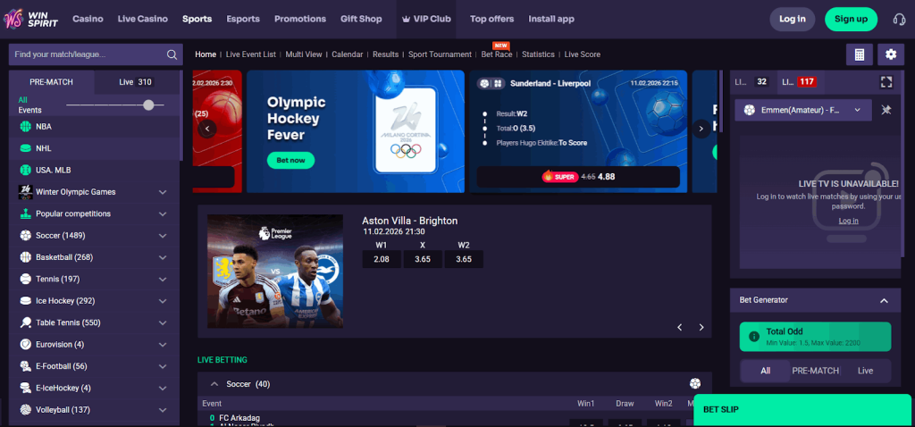 Winspirit nabízí přes 5 000 her od studií jako NetEnt, Hacksaw Gaming, Nolimit City, Push Gaming nebo Relax Gaming. Tituly jako Sweet Bonanza, Gates of Olympus nebo Dead or Alive 2 jsou dostupné okamžitě. Live sekce pokrývá blackjack, ruletu, baccarat i game shows — stream od Evolution jede stabilně. Rozhraní je přehledné, filtrování podle kategorie nebo poskytovatele funguje rychle. Mobilní verze funguje plynule přes browser i přes PWA aplikaci bez nutnosti stahování z App Store.
